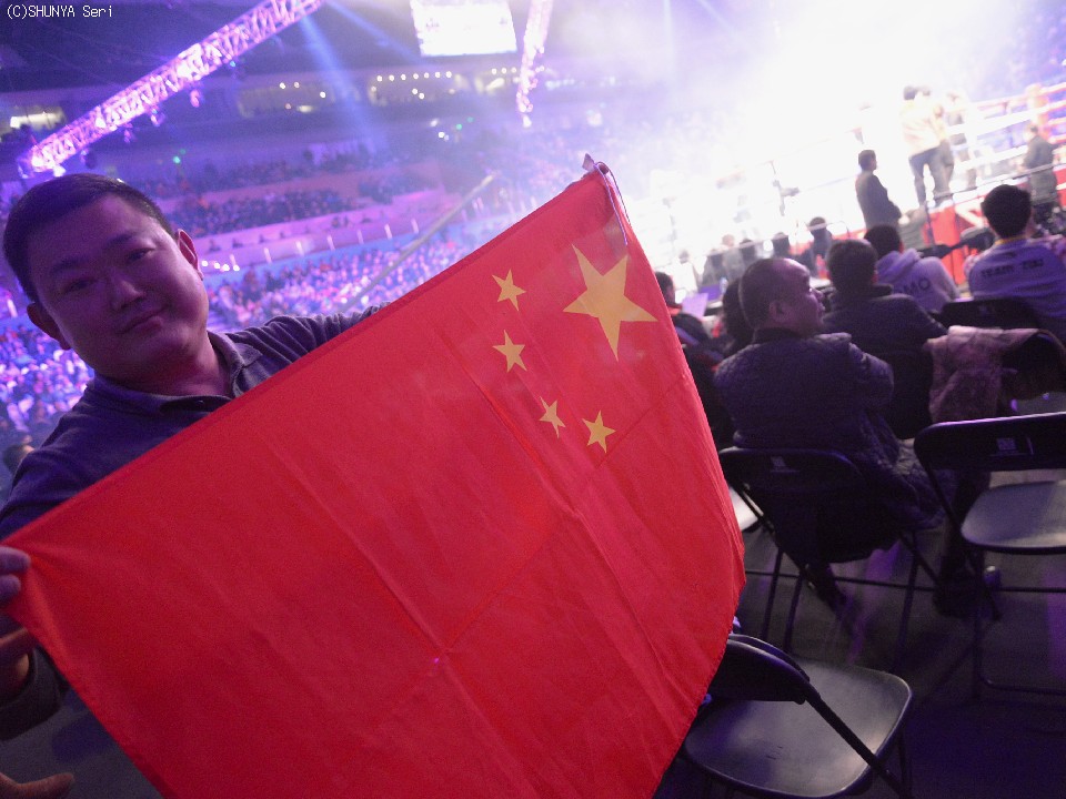 前座試合のインターバル中に控え室のゾウ・シミンが映し出されるたびに、会場は大きく揺れるようだった。