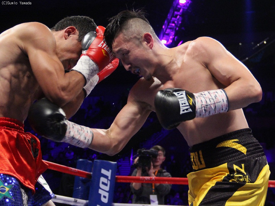 リング外でも注目度の高い国民的英雄は、大観衆に見守られる中で、コウチーニョにスピーディなストレートパンチをヒットさせていく。これまでであれば、パワー不足で空回りというのがプロ転向後のゾウだったが、今回は、コウチーニョを何度もコーナーに詰め、ディフェンスを崩していく。たまらず攻撃がラフになるコウチーニョに、観客は痛烈なブーイングを浴びせた。