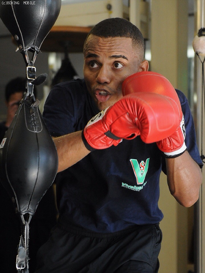 会見後に行われた練習では、スパーリングは行わず、軽くシャドーボクシングした後の縄跳びでは多くの報道陣が見守る中、マイペースに30分間休みなく飛び続けた。縄跳びでは軽快なステップを刻みリズム感のあるところを見せ、その後はサンドバッグ、パンチングボール(シングル、ダブル)でたっぷりと汗を流した。
