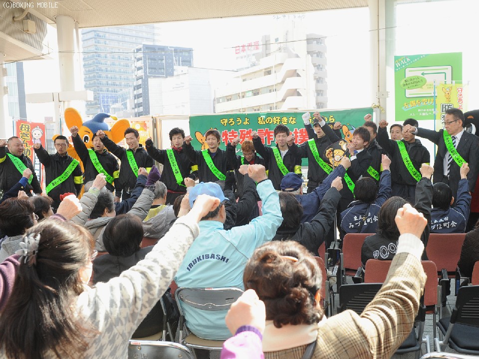パレード終了後のイベントでマイクを握った田口は、「自分は大丈夫だと思っている人が被害にあう。少しでも怪しいと思ったら、家族や警察に相談してください。僕はKOでベルトを守るので、皆さんも詐欺をノックアウトしましょう!」と勇ましく声を上げた。