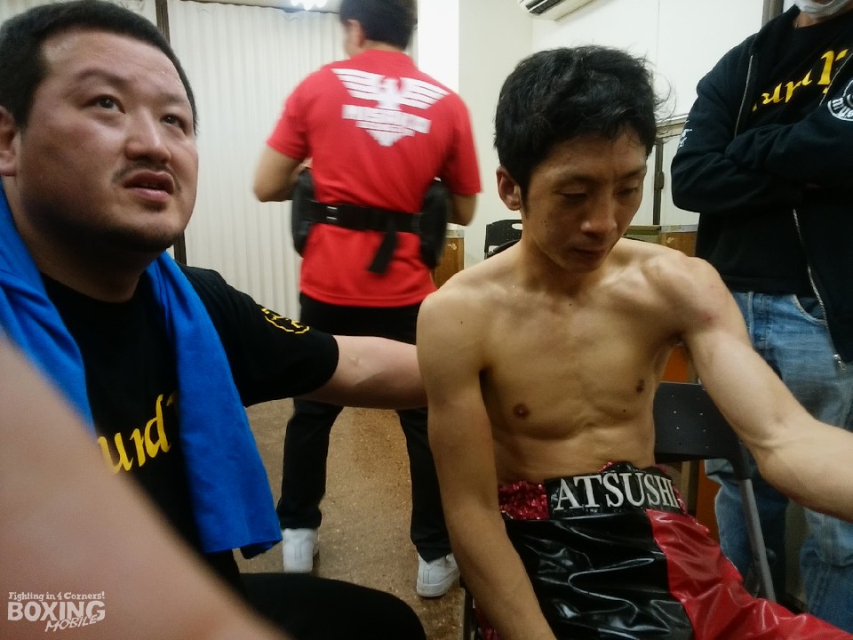 試合後、角谷はショックを隠しきれない様子で「やっちゃいましたね」と口を開き、「いつもは2ラウンドから調子が上がってくるのに、何もできないうちに終わってしまった」と項垂れた。