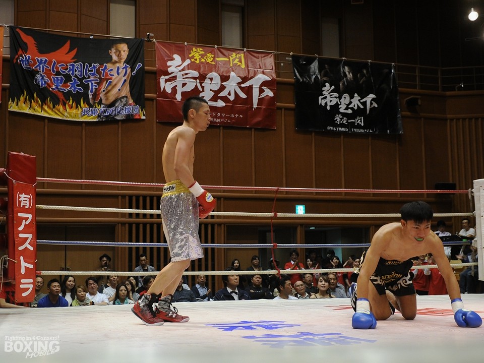 当初、試合はバンタム級で行われる予定だったが、帝里が脱水症状により計量に失敗し、急遽56.1kg契約に変更。コンディションが心配されたが、この日のサウスポー帝里はリードからの左ストレートが冴え、14戦9勝(2KO)5敗のルックフルーク・シットクルパラチャイ(タイ)を寄せ付けず、2ラウンドまでに3度のダウンを奪い快勝。世界前哨戦をKOで決め、2度目の挑戦に向け弾みをつけた。