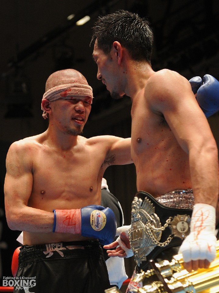 昨年、右拳の怪我で休養を余儀なくされた岡田は、この間に鍛えた下半身と左が見事に安定していた。速い切り返しで左右を連続で叩き込むと、麻生は4回までにヒッティングで流血。麻生も左ボディを効かせ岡田の疲れを誘ったが、5回までの採点は50-45、50-45、49-46と王者がほぼ独占。後半も左アッパーの4連打など、凄まじい手数で挑戦者を攻め立てた。麻生も崩れることなく詰め続けたが、左右3ヶ所の傷は出血が酷くなる一方となり、2度目のドクターチェック後にレフェリーは試合をストップ。前回以上のパフォーマンスを見せた岡田が7回TKO勝ちを収め、4度目の防衛に成功した。