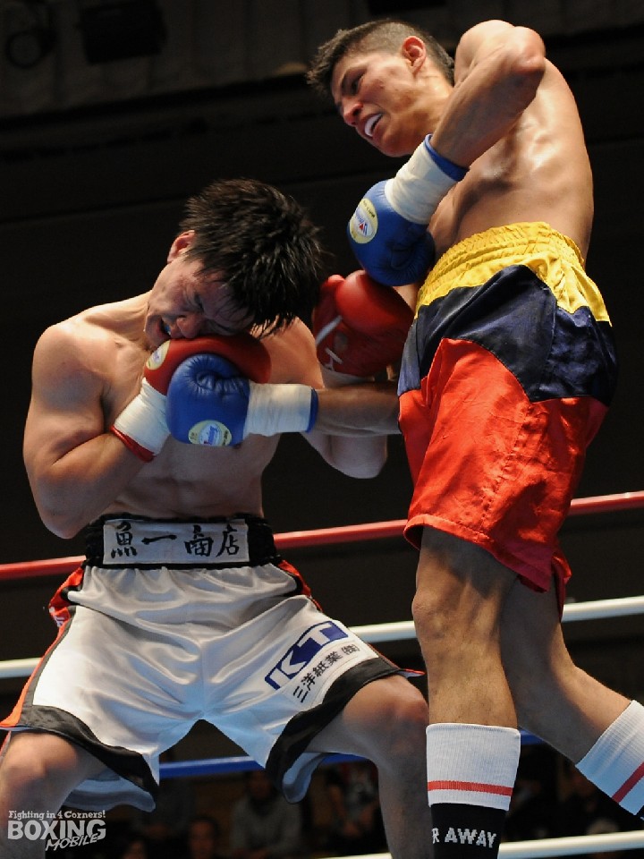 22日、後楽園ホールで開催された「Mega fight56」のメインでは、日本スーパーウエルター級6位の井上岳志(26=ワールドスポーツ)と同級10位エルフェロス・ベガ(31=平石)が対戦。互いにランク上位進出を懸けた8回戦は、井上が左ボディから右ストレートを好打すればベガも左右のアッパーで応戦し、一進一退の打ち合いが繰り広げられた。