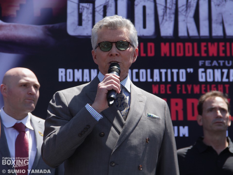 ミドル級の3団体王者ゲンナディ・ゴロフキン(34=カザフスタン/米)対ドミニク・ウェイド(26=米)、WBCフライ級王者ローマン・ゴンサレス(28=ニカラグア/帝拳)対マクウィリアムス・アローヨ(30=プエルトリコ)のダブル世界戦は23日(日本時間24日)、米国カリフォルニア州イングルウッドのフォーラムで行われる。試合を翌日に控えた22日、4選手が計量に臨んだ。