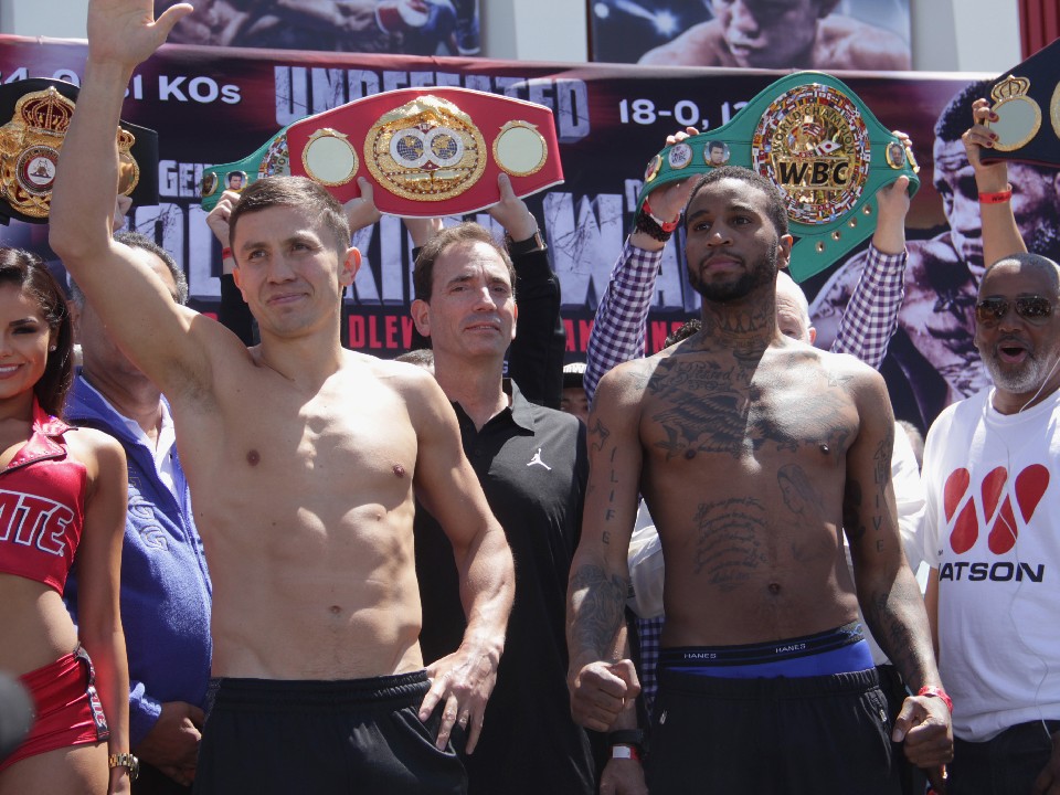 16連続KO防衛を狙う34戦全勝(31KO)のゴロフキンはリミットを1ポンド下回る159ポンド(72.1kg)、18戦全勝(12KO)のウェイドが159.6ポンド(72.39kg)でパスした。