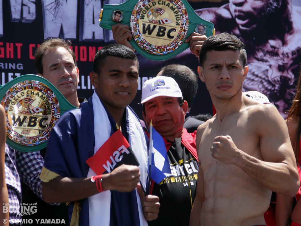 一方、44戦全勝(38KO)のゴンザレスは111.4ポンド(50.53kg)、08年北京五輪に出場した実績を持つ18戦16勝(14KO)2敗のアローヨは111.6ポンド(50.62kg)とそれぞれリミットの112ポンドを下回りクリア。ゴンザレスは「自分が軽量級最だということを証明する」と話した。