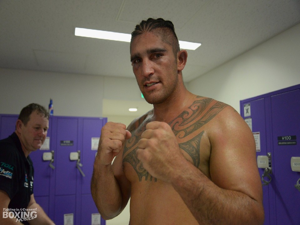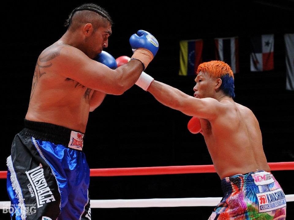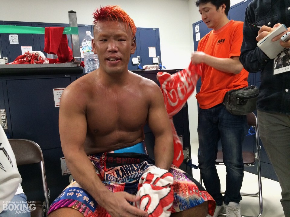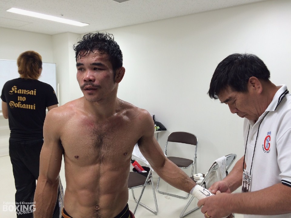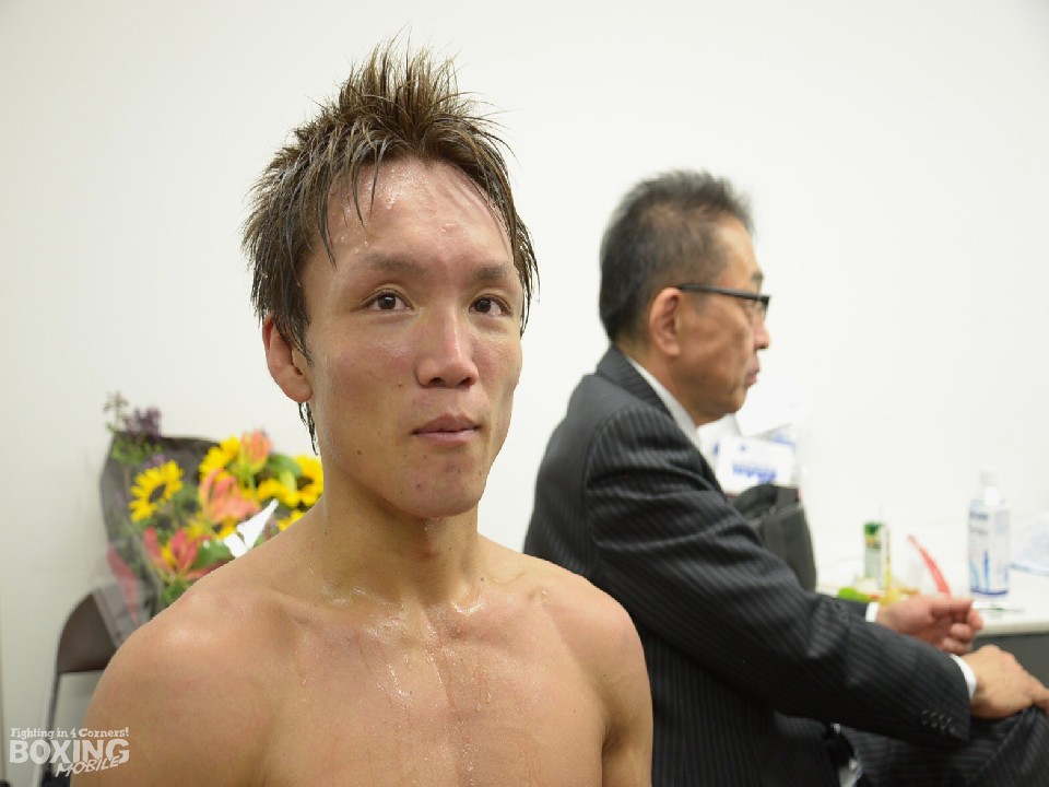 控え室に戻った久我勇作にワタナベジムの渡辺均会長は、安心した表情で「相手、強かっただろ」とひと言。久我は苦笑いでそれにうなずいた。「今回の相手が強いのは知っていた。大振りなのでそこにつけ込めると思ったけど、自分も力んで顔ばかり狙ってしまった。とりあえず倒せてほっとしている」。緊張から解放された久我の表情に笑顔が戻った。今後は「上の選手と試合をして、またタイトルに挑戦したい」。