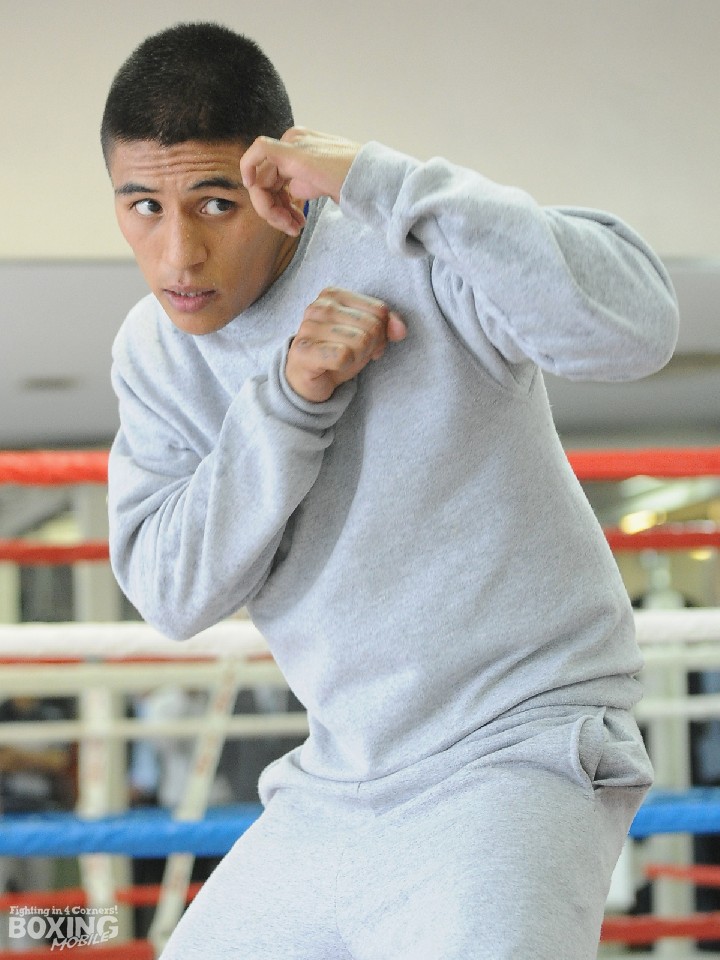 5月8日(日)東京・有明コロシアムで開催される「ボクシングフェス5.8ダブル世界戦」で、WBO世界スーパーフライ級王者・井上尚弥(23=大橋)に挑む同級1位ダビド・カルモナ(25=メキシコ)が3日、都内のジムで練習を公開した。