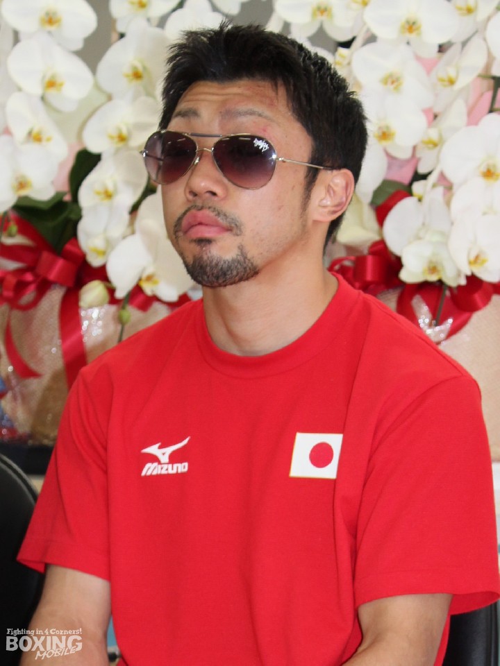 拓殖大学ボクシング部の3年先輩で、4月27日に王座陥落した前WBA世界スーパーフェザー級スーパー王者の内山高志(36=ワタナベ)に話が及ぶと、まだ連絡は取っていないとしながらも「自分が試合をしたところでどうこうではないが、先輩の耳に届けばと思っていた」とし、後輩の意見と前置きしながら「まだ背中を追い続けたい。再起するのを楽しみにしています」と復活を希望した。しばらくは左肩の治療に専念するため練習再開は未定だという。