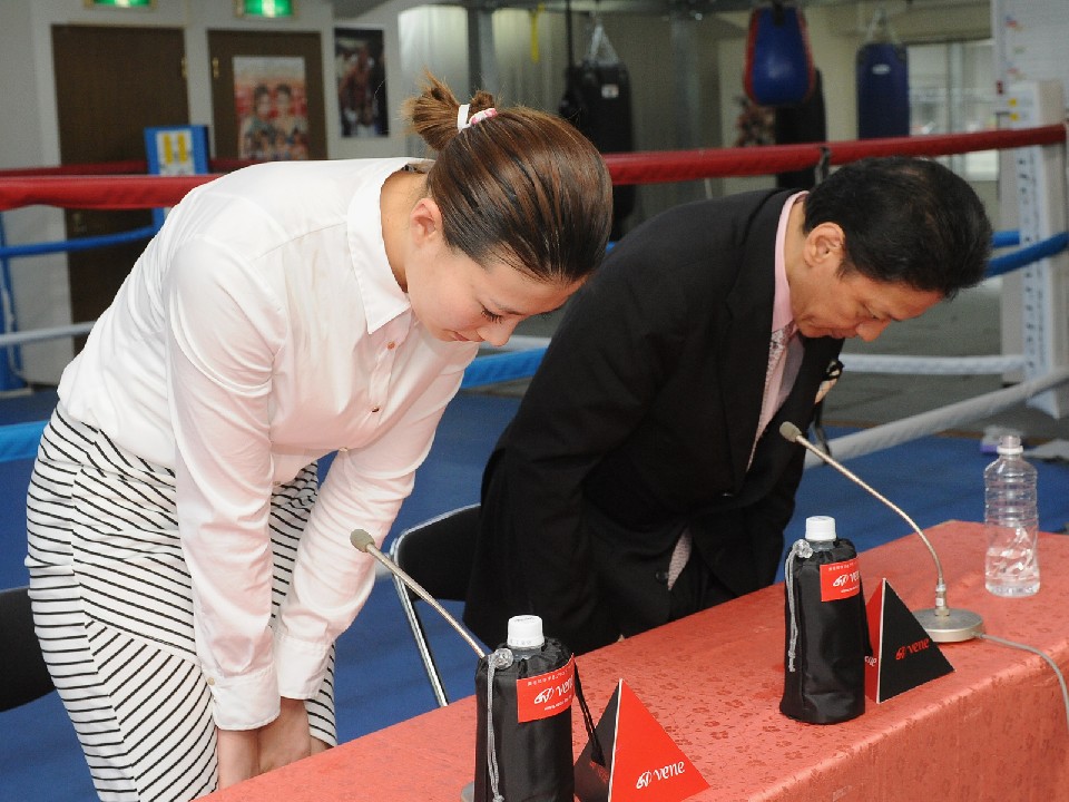 高野は18日に行われた次戦、6月6日(月)後楽園ホール開催の「ガッツファイティング」で再起戦を予定し、メインで4度目の防衛戦を行うWBC女子世界ミニフライ級王者・黒木優子(25=YuKO)と会見を開いたが、冒頭に「今回がラスト。勝っても負けても最後の試合になる。好きで始めたボクシングがいつのまにか人に指図されるようになった。具体的には言えないが、自分の考えとは違う方向に行っている」と発言し、協栄ジムスタッフと報道陣を驚かせた。これに激怒したのが、海外出張中で会見には不在だった金平桂一郎会長。即座にTwitteで反応し、「ボクシングが嫌だという選手を試合に出すわけにはいかない」と6月6日の再起戦を中止する意向を示した。その後、態度を軟化させた金平会長は帰国次第、高野と話し合うとし、24日にその場が設けられ27日の発表となった。