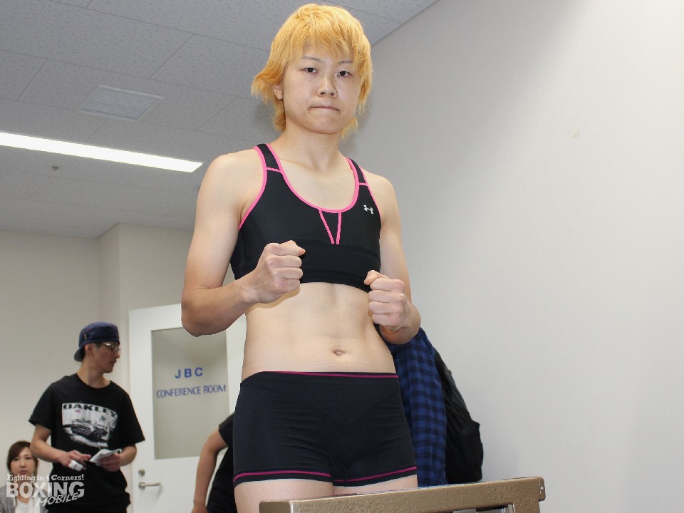 これがタイトル初挑戦のカイは100gアンダーの57.0kgで秤を降りた。金髪にして計量会場に現れたカイは「タイトル戦なので思い切って金髪にしてみた」と語った。「明日は最初からペースを握って最後まで突っ走る。ベルトよりも三好選手にリベンジしたい」と静かに闘志を燃やした。