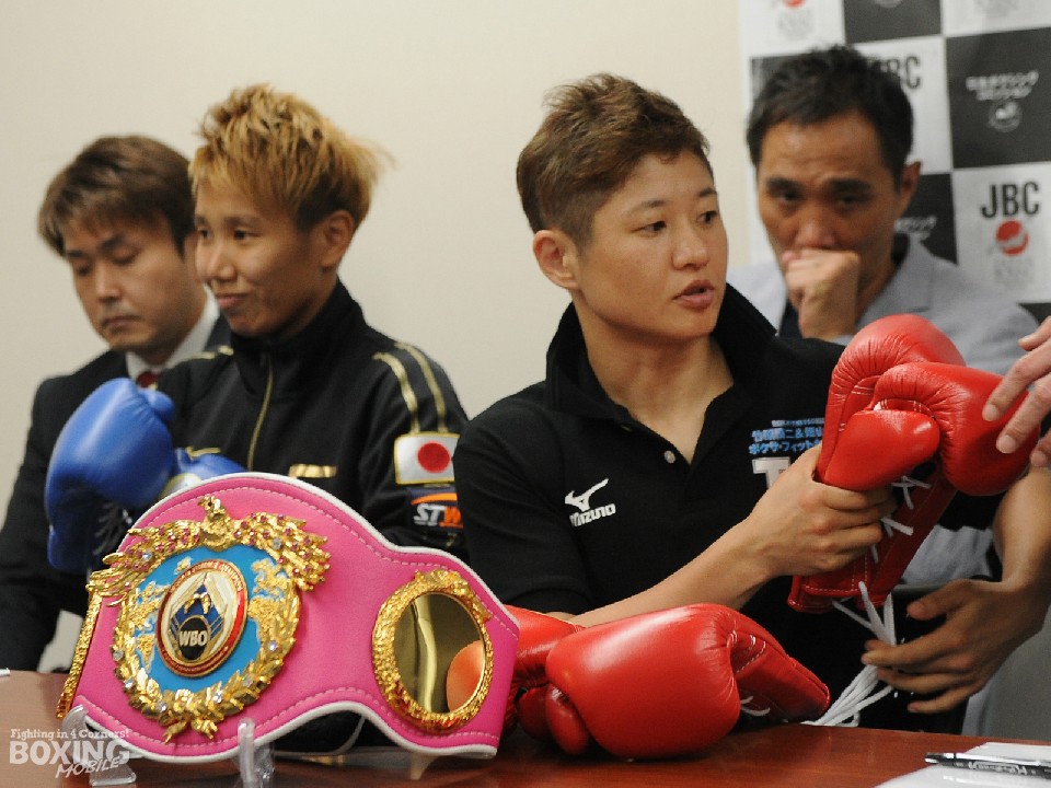 日本女子至高の一戦、WBO女子世界バンタム級王者・藤岡奈穂子(40=竹原&畑山)対元WBC女子世界フライ級王者・真道ゴー(28=グリーンツダ)の王座戦が明日13日、後楽園ホールで開催されるにあたり、調印式と前日計量が都内の日本ボクシングコミッションで行われた。