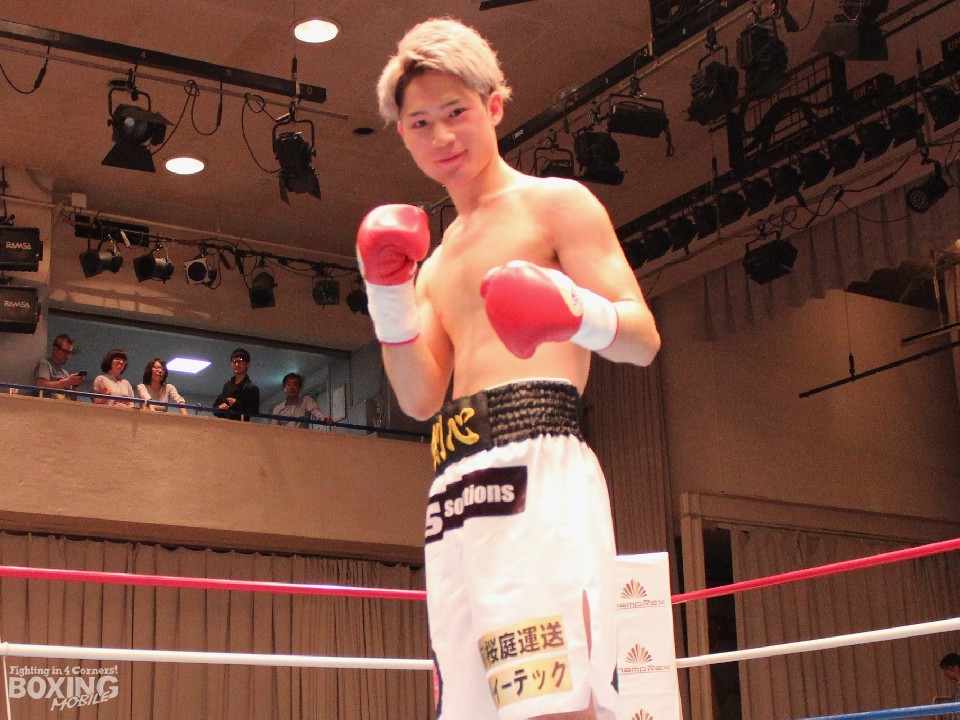見事なノックアウト勝ちを収めた大嶋は「接近戦になると思っていたので右は狙っていた。先輩とたくさんスパーさせてもらったのでサウスポー対策はバッチリでした」と安堵の表情。アマ40戦27勝13敗、弘前工業高校卒業後は自衛隊に入隊した大嶋だが、プロになる夢を諦めきれず今年の1月に帝拳ジムに入門、この日を迎えた。「まずは次の試合にしっかり勝つこと。目の前の試合を勝っていき最後は世界王者になりたい」と上京してまだ5ヶ月の大嶋は目を輝かせた。