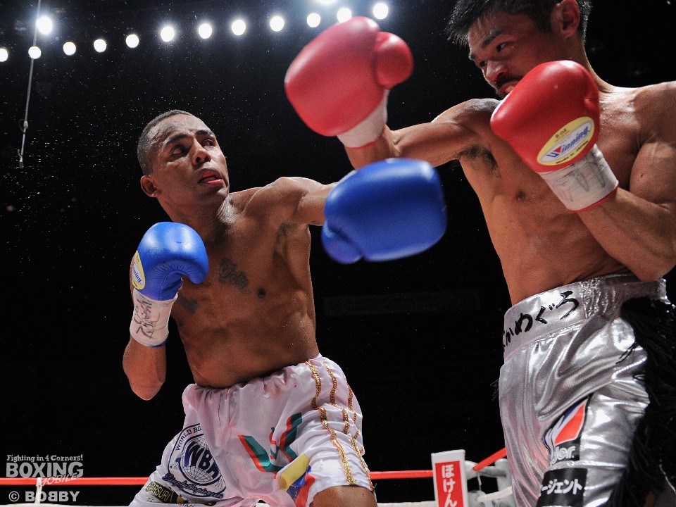 両者は2013年5月に大田区総合体育館で対戦。先に右カウンターでダウンを奪ったのは河野だったが、ソリスは後半に左フックでダウンを奪い返した。以降も激しくパンチを交錯させた末の判定は2対0でソリスに軍配。その後にソリスが、IBF世界同級王者・亀田大毅(亀田)との統一戦で体重オーバーしたことで王座を剥奪され、その現在は河野が同王座を奪回している。