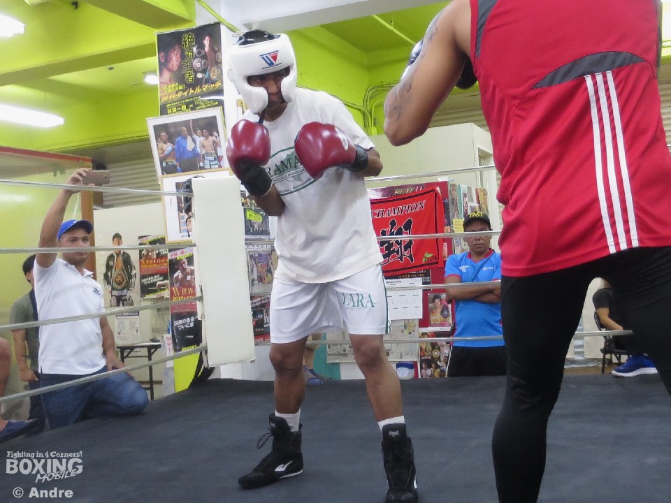 練習は、井岡弘樹ジムに所属するパブロ・カリージョ(28)を相手に1ラウンドの軽めのスパーリング。その後はミット打ち、サンドバック打ちとしっかり1時間体を動かして帰路に着いた。体重調整に苦労しているのか、終始覇気のない様子が気になる。試合は5日後。