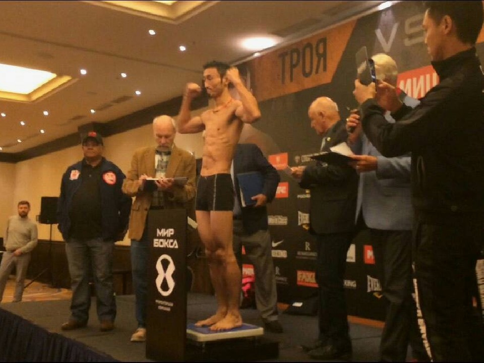 日本時間10日早朝にロシア・モスクワで開催されるIBF世界スーパーライト級タイトルマッチの計量が8日に現地で行われ、王者エドゥアルド・トロヤノフスキー(露)がリミットに近い63.45kg、挑戦者で同級3位の小原佳太(29=三迫)がアンダーの63.15kgで一発クリアした。