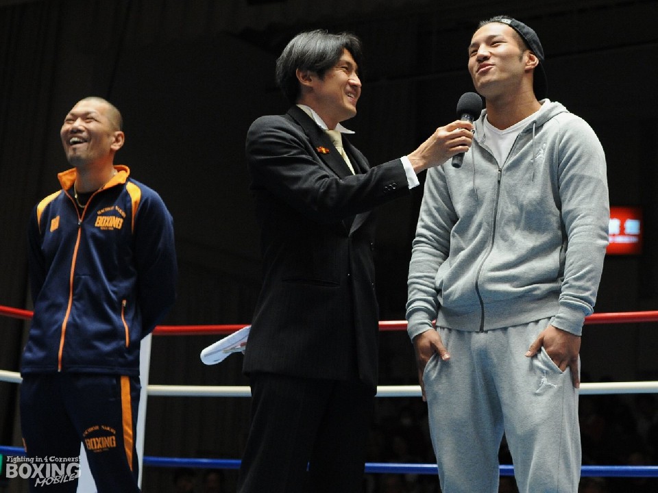 元日本チャンピオン同士の対決が発表された後楽園ホールのリング上、先にマイクを向けられた胡朋宏(横浜光)が「日本チャンピオンに戻りたいので、こんな仮免みたいな試合はすぐ終わらせて、次に行きたいですね。打ち合いしかできないんで、KO決着になると思います」と、淵上を挑発した。
