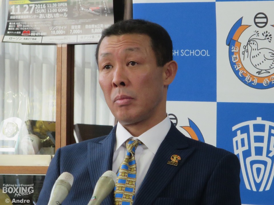 岐阜市内の中京高等学校で12日、元WBC世界スーパーバンタム級王者の畑中清詞会長の長男、畑中建人(18=中京高校3年)が松田ジム主催の「SUPER FIGHT.51」のセミファイナルでプロデビューすることが発表された。初陣を迎える11月27日(日)は、父の清詞氏と同じプロデビュー日とのこと。刈谷市あいおいホールにGO!