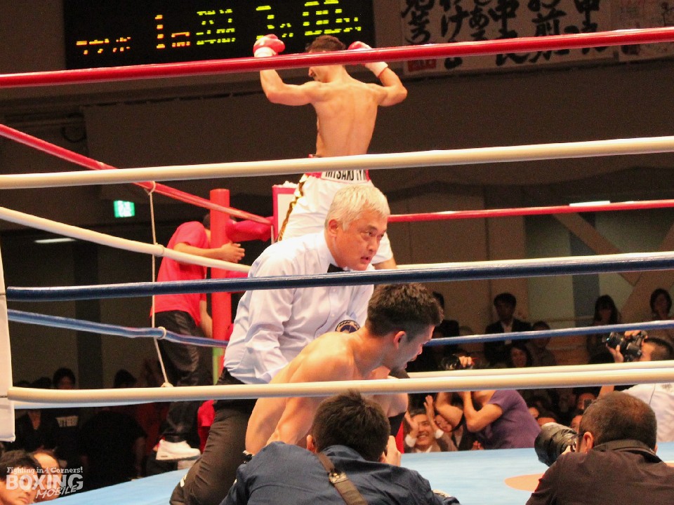 第5試合は107パウンド契約8回戦、OPBF東洋太平洋ライトフライ級4位谷口将隆(22=ワタナベ)がIBF世界ミニマム級12位デクスター・アリメント(20=フィリピン)に挑む冒険マッチ。初回、スイッチを繰り返しながらラフな攻撃を仕掛けてくるアリメントに対し後手に回っていた谷口だったが、2ラウンドに狙いすました左フックをカウンターでねじ込みダウンを奪った。その後は前に出てくるアリメントを冷静に捌いた谷口がジャッジ2者の支持を得て判定勝ち。世界ランキング入りに前進した。