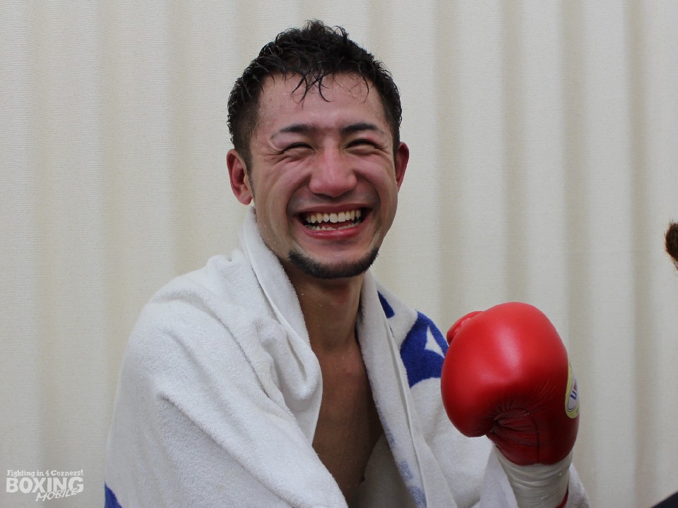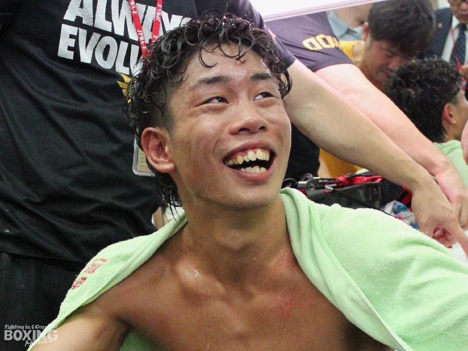 控室で喜びを爆発させた谷口は「動画を観て相手がスイッチしてくるのはわかっていた。ダウンを奪った左は抜ける感じがした。思った通りに試合を進めることができた」と試合を振り返った。龍谷大学ボクシング部主将で74戦のキャリアを引っ提げプロデビュー。この日の勝利で大きな飛躍が期待されるが「自分的にはミニマム級の方がより動けると思う」と最軽量級で同門の京口紘人(22)とともに出世争いをすると明言した。
