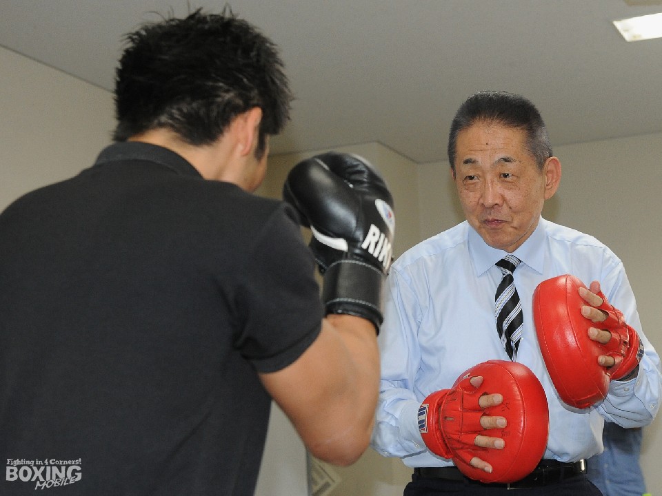 渡辺均会長とのミット打ちも披露した