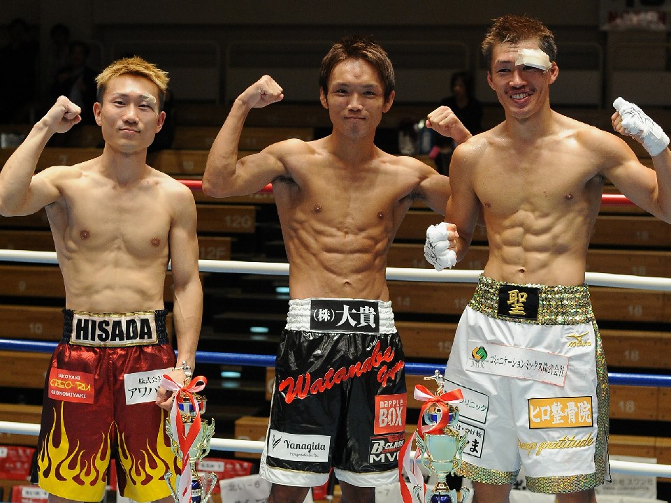 22日に後楽園ホールで開催された日本王座挑戦権獲得賞金マッチ「最強後楽園」は、スーパーライト級で出場する予定だった同級2位、佐藤矩彰(31=新日本木村)が前日計量で体重超過により失格。同級1位の麻生興一(30=三迫)が不戦勝となり、今大会はライトフライ級、スーパーバンタム級、スーパーフェザー級の3階級で行われ、試合後に最優秀(MVP)、技能、敢闘の三賞が発表された。