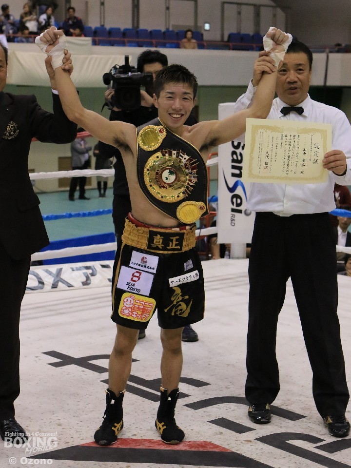 ミニマム級の新チャンピオンとなった山中竜也はスーパーバンタム級王者の久保隼に続いて東洋太平洋タイトルでは2本目のベルトを真正ジムにもたらした。