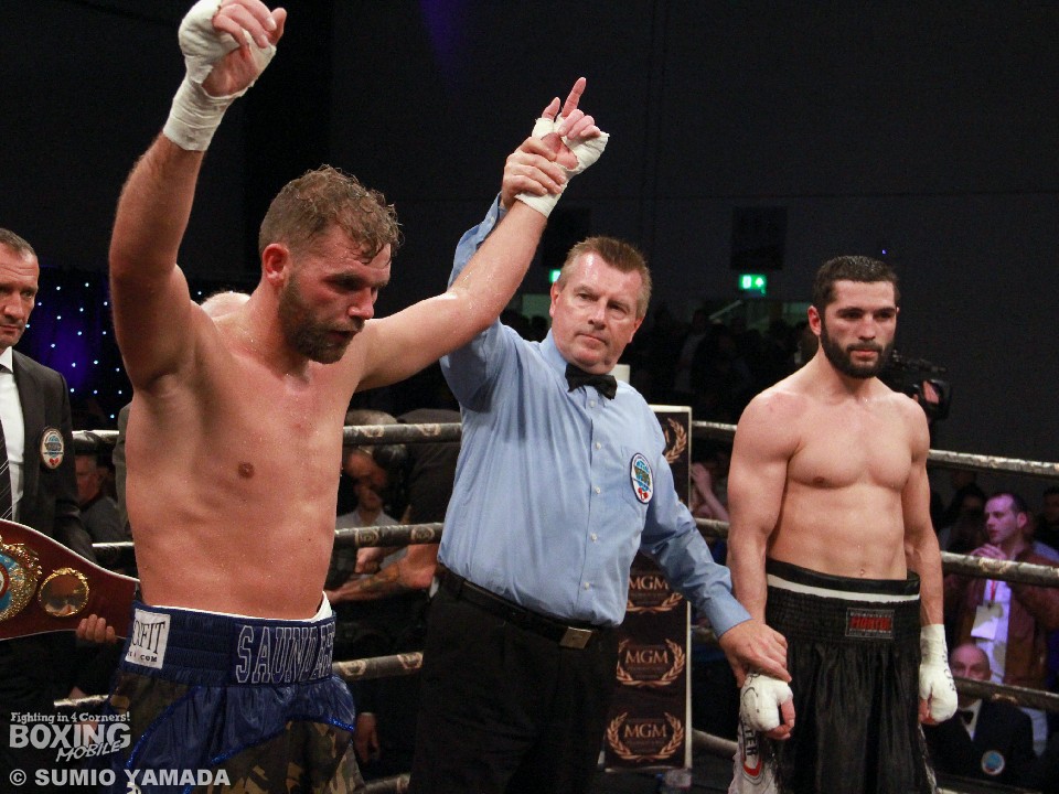 オッズでは16対1と圧倒有利とみられていたサンダースだが、約1年ぶりの実戦ということで勝負勘が鈍っていたのかもしれない。自身の負傷やビジネスの問題、さらにはアカボフ側の書類上の不手際などで5度、6度と延期されたすえに迎えた初防衛戦は予想以上の苦戦だった。サウスポー同士の一戦はともに右ジャブから左に繋げる機会を狙う展開となり、競ったラウンドが続いた。見方によってはアカボフが支配したラウンドが多かったという意見もあるが、オフィシャルの3人のジャッジは王者により多くのポイントをつけていた。危機感を抱いたのかサンダースは8回からペースを上げ、10回までを連取。これが効いてサンダースは116対113、116対112、115対113のスコアで勝利を収めた。トレーナーをはじめ1年前とはブレーンのメンバーを変えて試合に臨んだサンダースは24戦全勝(12KO)。アカボフは18戦16勝(7KO)2敗。