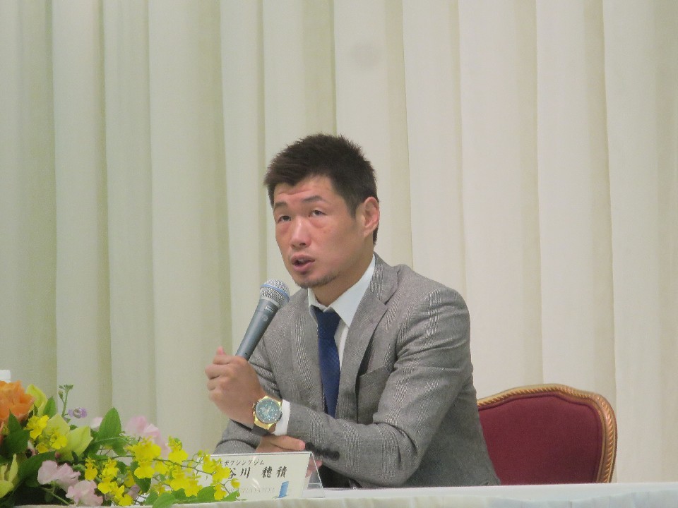 会見後囲み取材に応じた真正ジムの山下正人会長は「決めていたことやから、とりあえず今日は涙涙ではなくて良かったです。これまでも色々あったし、順風満帆でなかったからね。ジムを興したときは世界チャンピオンやのに公園で練習したりもあったからね。でも、それがあったから強くなれたんやろうし。なんせ長谷川は一番努力する選手。今でもジムで一番練習するからな。長谷川穂積は努力の人。寂しさ半分、ホッとした半分やね」と心境を語った。