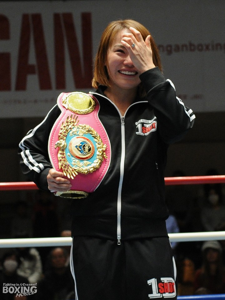 12年6月にデビューした池原は、14年9月の8戦目でグレッチェン・アバニエル(比)との決定戦を制しWBO王座を獲得。気迫溢れるファイトと豊富な手数、何よりもチャーミングな笑顔が魅力的な選手だった。生涯戦績は12戦9勝(3KO)1敗2分。