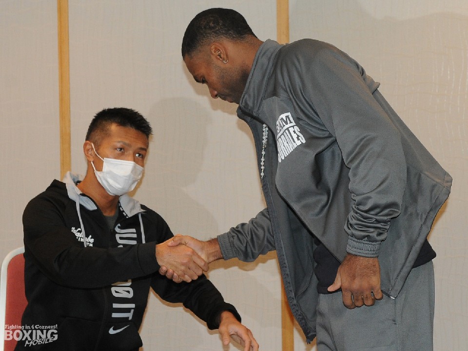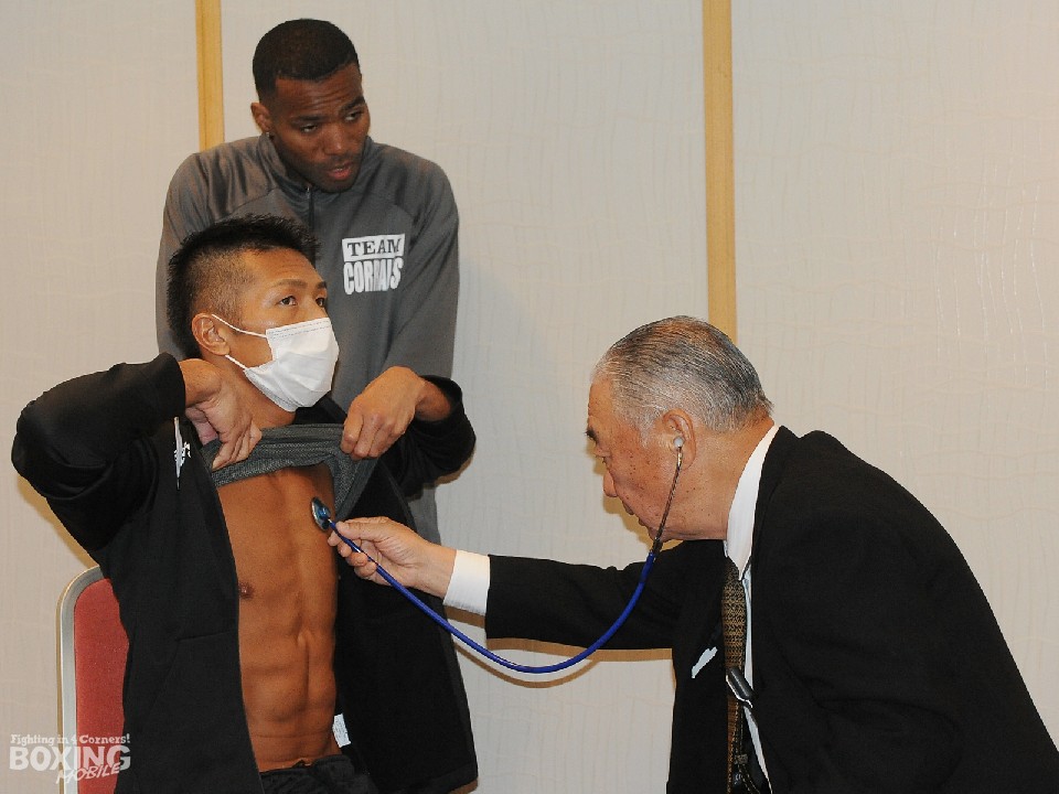 大晦日、東京・大田区総合体育館で開催されるWBA世界スーパーフェザー級タイトルマッチ、スーパー王者ジャスラエル・コラレス(25=パナマ)と前チャンピオン内山高志(37=ワタナベ)の予備検診が都内のホテルで行われ、ともに異常なしと診断された。8ヵ月ぶりの対面となった両者は握手をかわし、3日後に迫った再戦に向け意気込みを語った。