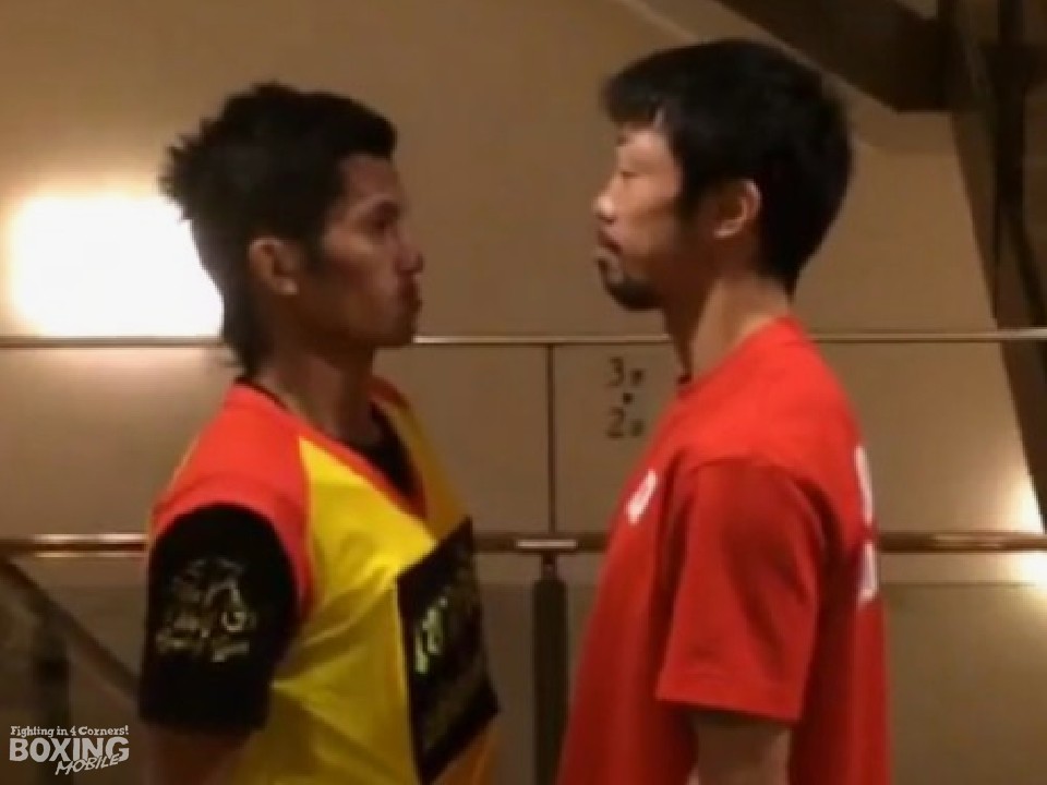 このカードは挑戦者の母国タイでも注目されている。日本の取材陣が、八重樫の大学の先輩で大晦日にリベンジマッチに挑む内山高志(ワタナベ)の調印式のために移動を始めると、空かさずタイの取材陣がチャンピオンとサマートレックに接近。両選手は要望どおりフェイスオフの撮影に応じた。