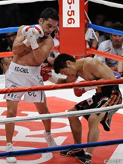 日本スーパーライト級タイトルマッチ。王者・小野寺洋介山(オサム)のベルトに挑んだ亀海喜寛(帝拳)がTKOで勝利し、潜在能力の高さを誰もが認めた一戦。