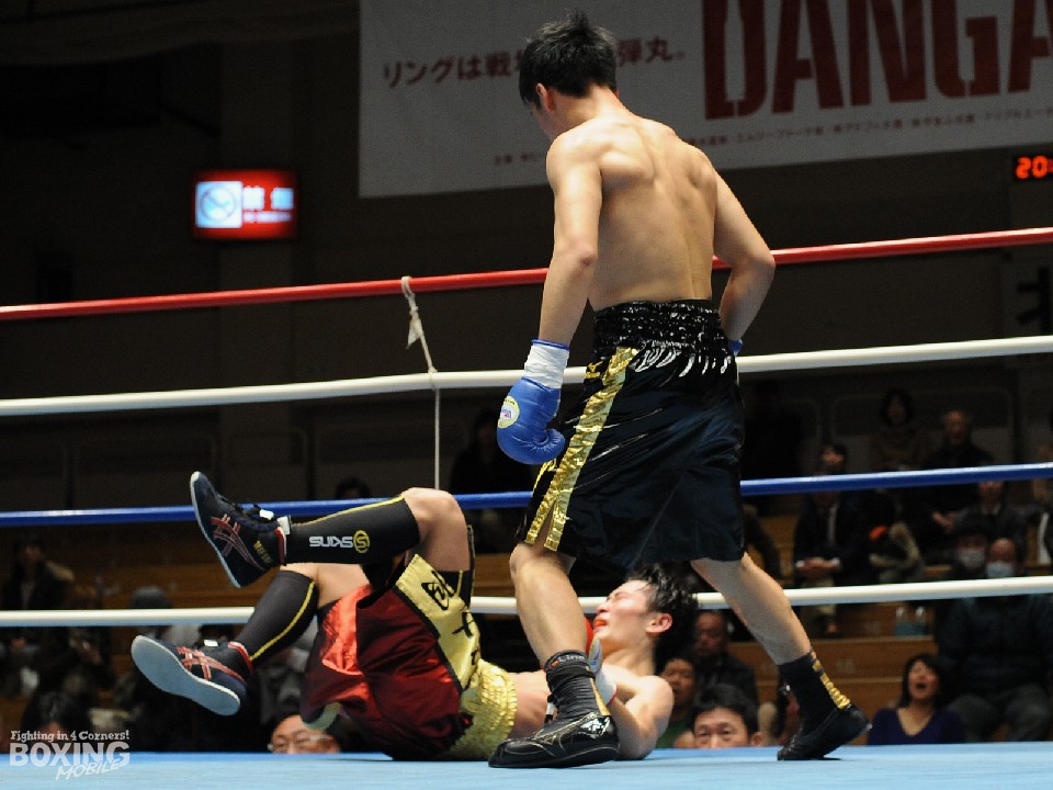 「右に注意しろ!」と兄で前日本スーパーフェザー級王者、内藤律樹(25)の指示が飛ぶ中、サウスポーの内藤は3回、三船に左ストレートを打ち込みダウンを奪うと、これがフィニッシュブローとなりレフェリーストップによるTKO勝利を収めた。