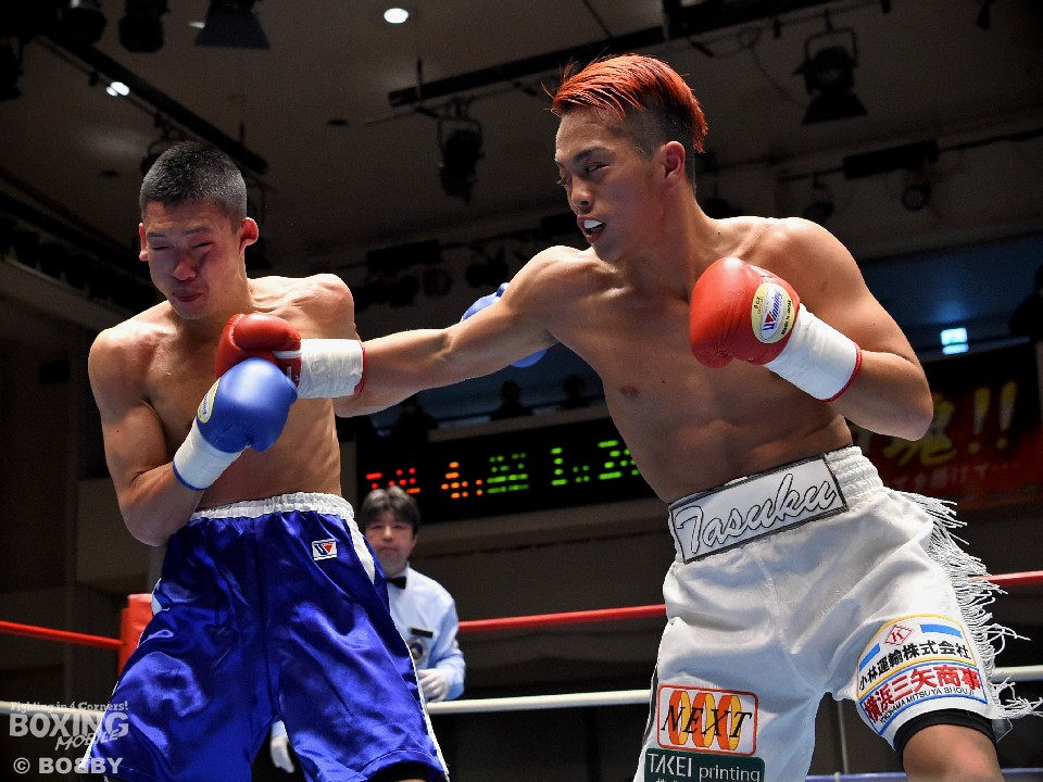 ウェルター級もイキのいい選手が現れた。中村俊介(帝拳)はTKO勝利を収めると「緊張して動けなかった。接近戦から離れぎわに当てられなかったので、足を使った。練習どおりのカウンターが入って、その後も追い込みがかけられたのがよかった。自分に自信がつく試合でした」と、勇気をテーマにリングに上がったという試合を振り返った。