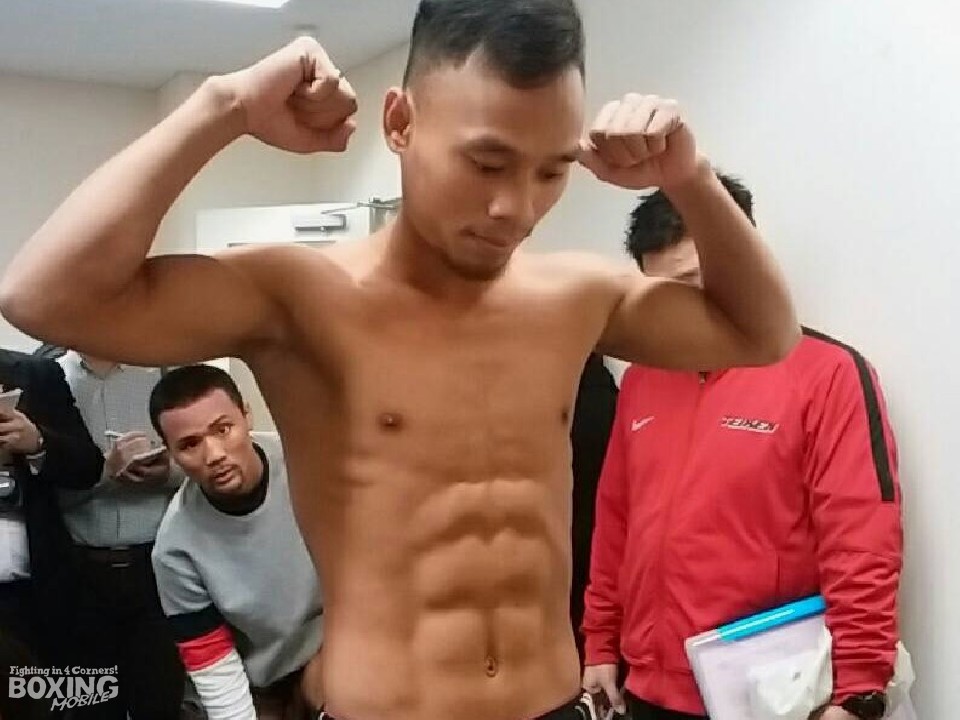 これが世界前哨戦となる比嘉は100gアンダーの52.0kgでクリアした。計量後にココナッツジュースを飲み干し笑顔を見せた比嘉は「ファンも期待しているので明日もKOを狙っていく。プレッシャーはあるが良い練習ができているので以前より不安がなくなった。ボクシングはなにがあるかわからないので初回からチャンスがあれば倒しにいく」とノックアウト勝利を宣言した。