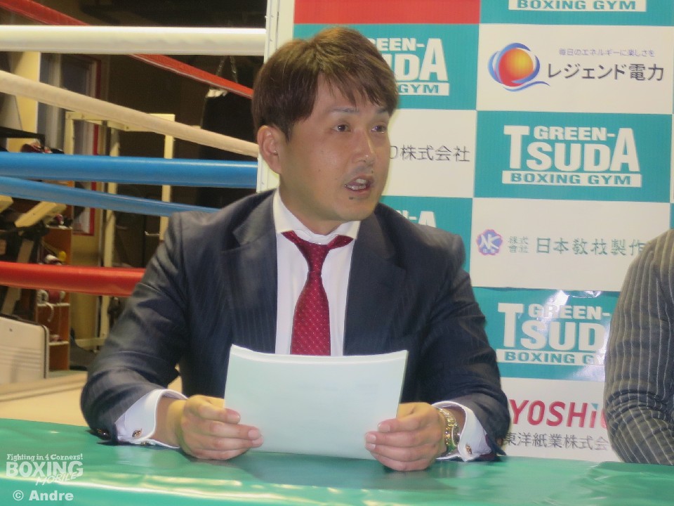 続いて、京口は「今回移籍2戦目で東洋太平洋ランカーと組んでもらいありがたく思っています。今回しっかりランキングをとって行きたいと思いますので応援よろしくお願いします」と落ち着いた様子で語った。
