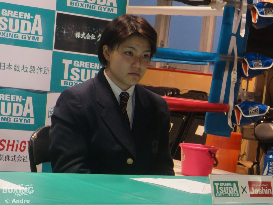女子高生ボクサーの小村は「今年一発目の試合なので、気を引き締めて絶対倒そうと思います。応援よろしくお願いします」と語った。さらに昨年落第し2度目の高校2年生から3年への進級を目指す小村は「今年は3年生になれると思います。とりあえず来週から期末テストなので、そこも集中して頑張ります」と試合同様の強い決意を語った。