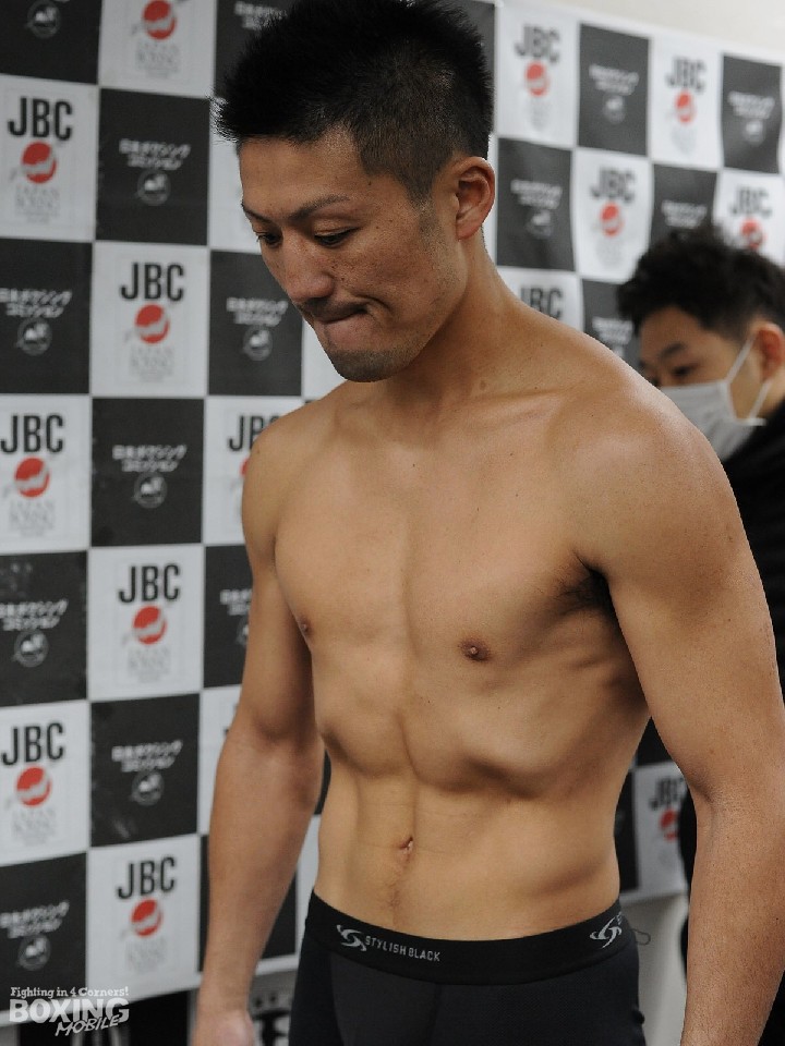 昨年4月に英国で判定負けして以来、これが再起2戦目となる天笠はリミットちょうどの56.8kgでパス。主戦場としているフェザー級(57.1kg)より300g軽い体重での試合となるが「減量は少しキツかったが、問題ない」と平常心を強調。「明日は万全を期して力を出し切る」と静かに闘志を燃やした。