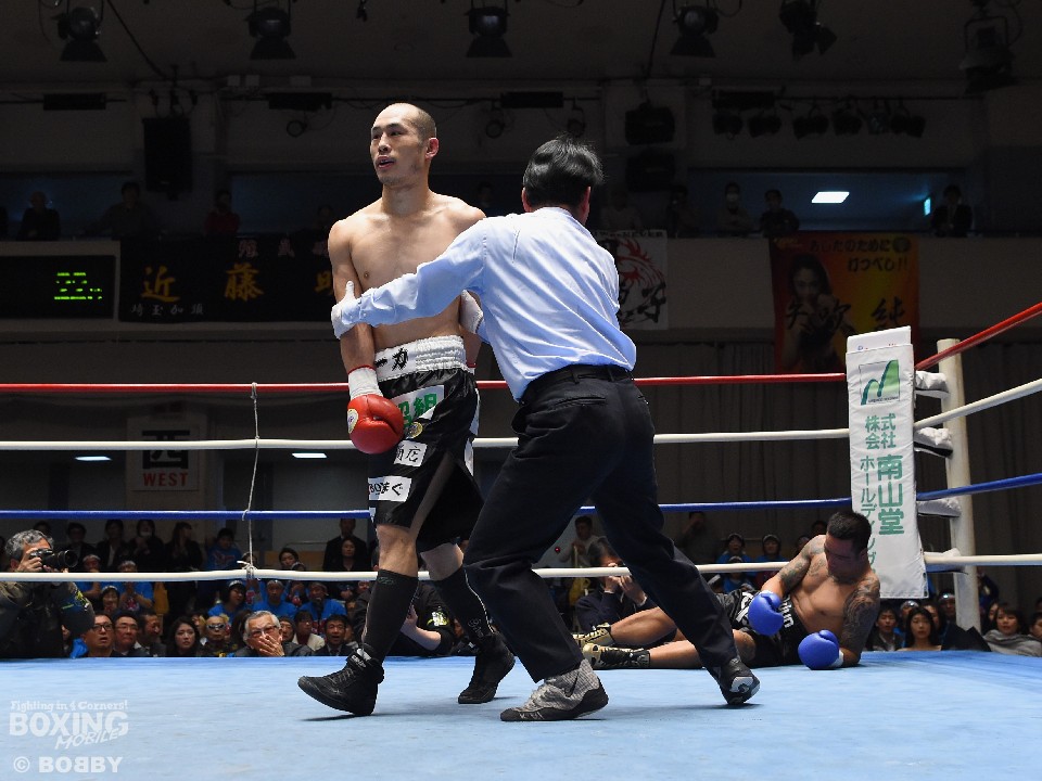 1年8ヶ月ぶりとなる再戦は初回、近藤がジャブから右に繋げる丁寧なボクシングを展開。ペースを握った近藤は次の回に打ち下ろしの右ストレートで痛烈なダウンを奪った。立ち上がったパトムサクだったが、近藤の右を浴びると再びキャンバスに崩れ落ちた。近藤が前回の対戦より早いラウンドでパトムサクを返り討ちにした。