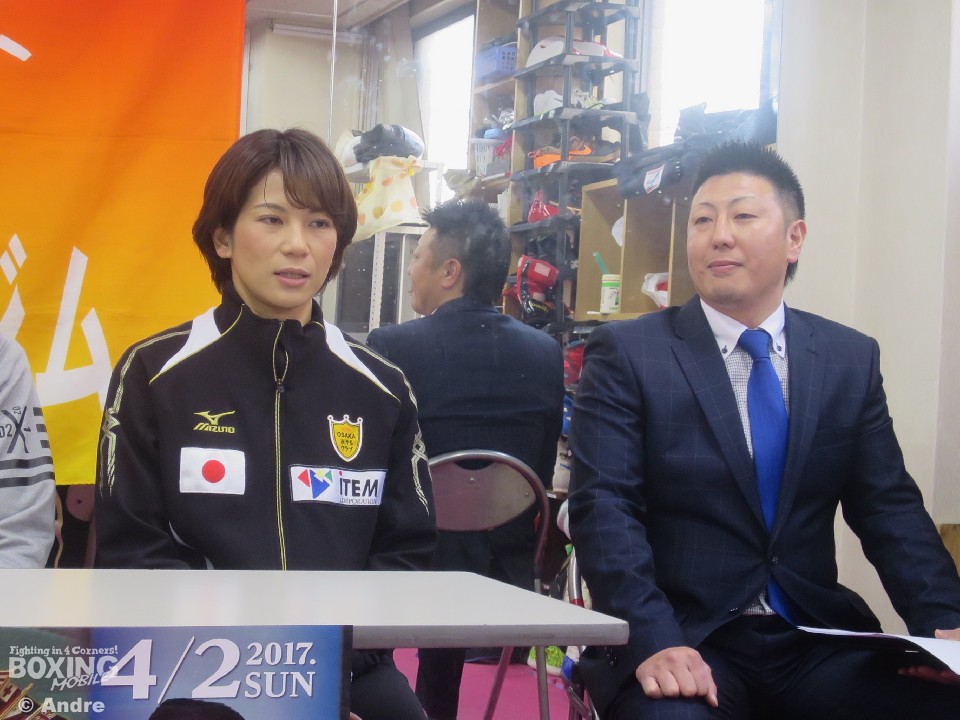 会見の冒頭、春木博志会長は東洋太平洋スーパーフライ級タイトルマッチに挑戦する川口の次戦について「レネ・ダッケル選手は、とても強いチャンピオンですが、国内初タイトル戦となる川口も、ここまで順調に調整ができているので、必ずベルトを巻いてくれると信じています」と期待した。また、中学3年生から堺東ミツキジムで練習し、「文武両道」を目標に大阪大学工学部に合格し、晴れてデビュー戦を迎える川口については、「本当に一生懸命練習する子です、頭を使ってボクシングをするので必ず上に行けると思っています。今年は2試合か3試合して来年は新人王にエントリーします」と期待を口にした。