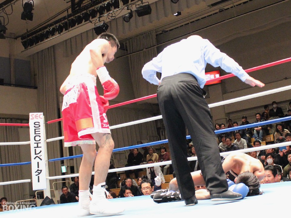 初回は様子を見た江藤だったが、2回になるとプレスをかけて左ボディから右ストレートでダウンを演出。立ち上がってきたシッティチャイに右で再び倒し、最後は連打でフィニッシュした。