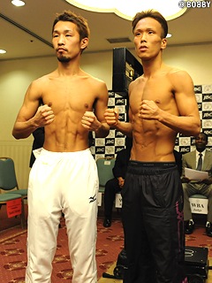 計量後の囲み会見では「ようやくって感じ。明日出し切るだけ。コンディションも良く、今の状態で上がり勝つだけ。しっかり自分の存在をアピールし、KOで勝利します。油断はしない。100%勝つ自信はある!!」とKO宣言でのタイトル初防衛に自信の表情を見せた。