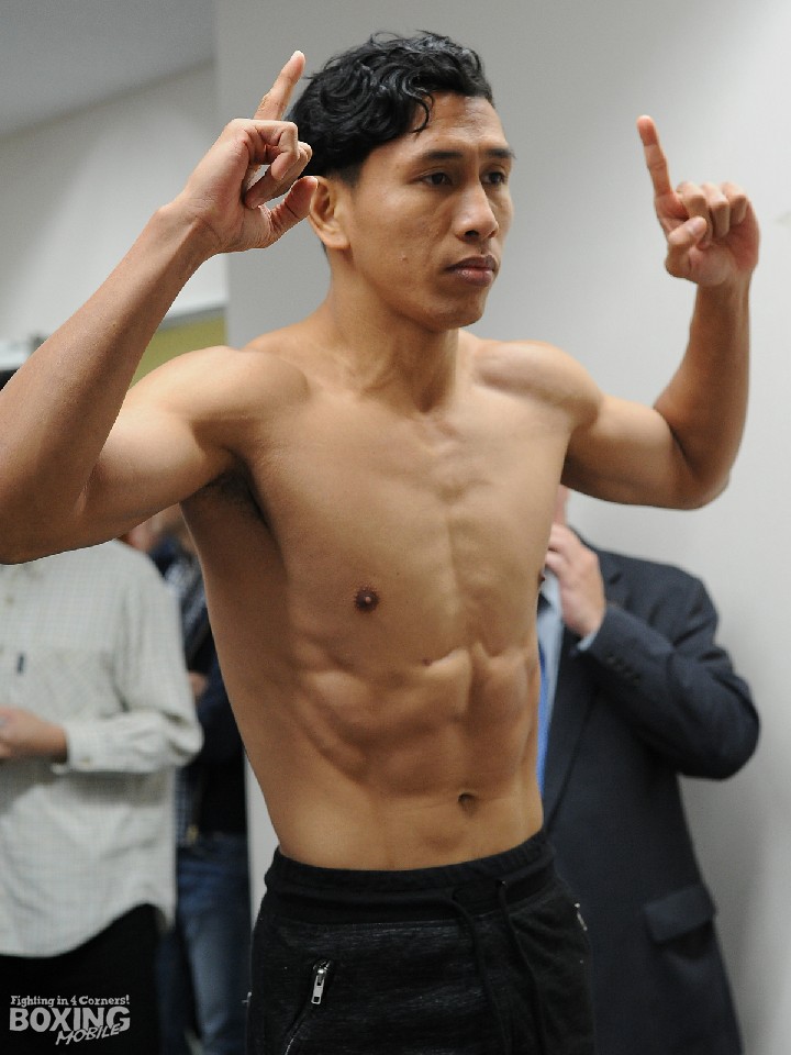 リミットでパスしたオリベロスは昨年3月に来日し、5月に世界挑戦する比嘉大吾(白井・具志堅)とWBCユース・フライ級王座を争い2回TKO負けを喫しているが、「今回は益田の世界ランクを狙いに日本にやってきた。良い試合をする」と拳に力を込めた。