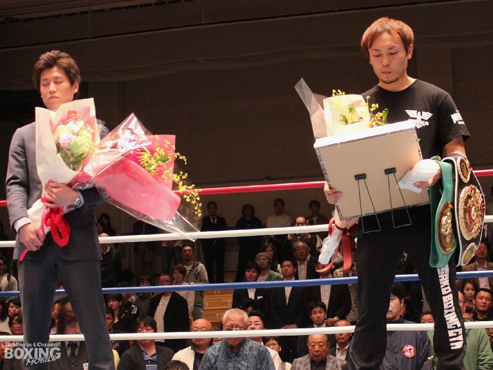 続けて挨拶した椎野氏は「15戦しか戦っていないが、チャンスをもらってチャンピオンになることができた。三迫会長、久保マネージャーのおかげです。たくさんの人に応援してもらってプロボクサーとして幸せな時間を過ごしました。そして感謝を伝えたいのは両親です。お父さん、お母さん本当にありがとうございました」と言うと会場から惜しみない拍手が送られた。