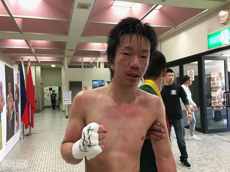 控え室で悔しそうな顔をしていたのは、この日プロ2戦目を迎えた桂佑希。左右のフックで突進してきた中国人選手に手を焼いた。「次は勝ちます」とボクモバの取材に答えてくれた。