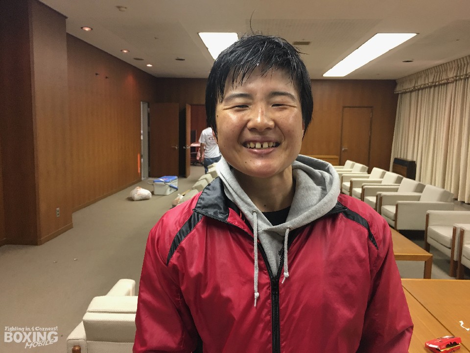 女子の試合も用意されたこの日の金沢。メインの試合が終わると、WBOアジアパシフィックタイトルを獲得したフィリピン出身で同門のセルバニアの取材に訪れた石川テレビのクルーから英語の通訳を頼まれた神成麻美は、中国出身の十代の選手と対戦した。「しっかりパンチを当てても向かってきた。強かったですね」と対戦相手を称えた。この日の白星で弾みをつけたい神成は「ベルトを狙いたい」と話す一方で「金沢は陸の孤島」とのことで、関西と関東の女子選手達との対戦を熱望した。