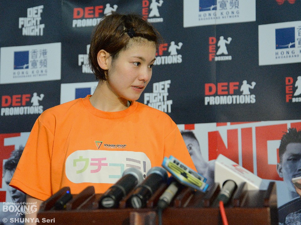 13日、香港コンベンションセンターで開かれたDEFプロモーション主催の『DEF FIGHT NIGHT15』は、メインイベンターが日本のOPBF東洋太平洋スーパーバンタム級王者・後藤あゆみ(ワタナベ)。ほかにも前回から連続参戦の渡邉卓也(青木)やWBOアジア太平洋フライ王者・木村翔(同)、かつてマカオでレックス・ツォー(香港)に敗れた松山真虎(ワタナベ)、山本ライアン(同)ら、日本のジムから5人が参戦し、拍手喝采を浴びた。