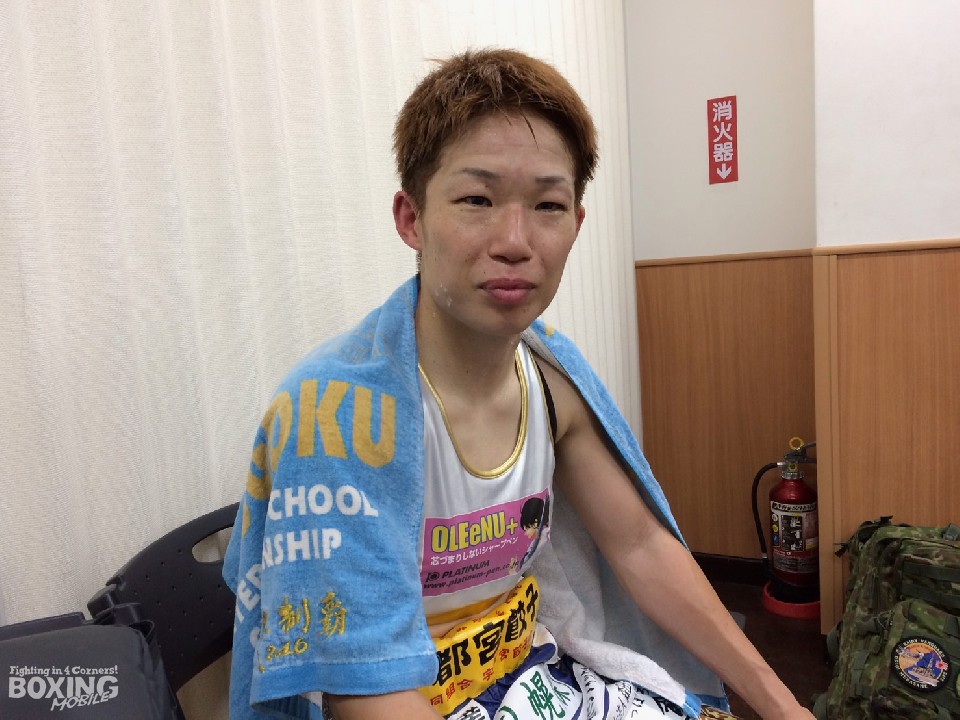 プロデビュー以来、無傷の4連勝目をKO勝利で飾ったチャオズ・箕輪(ワタナベ)は「今回は無理に倒しにいこうとしないでジャブから崩しにいったのが良かった。自分のボクシングを心掛けた。もっとストレートボディを使えれば良かった。世界戦は会長、トレーナーがGOサインを出したらいつでもいきたい」と頂点へ弾みをつけた。